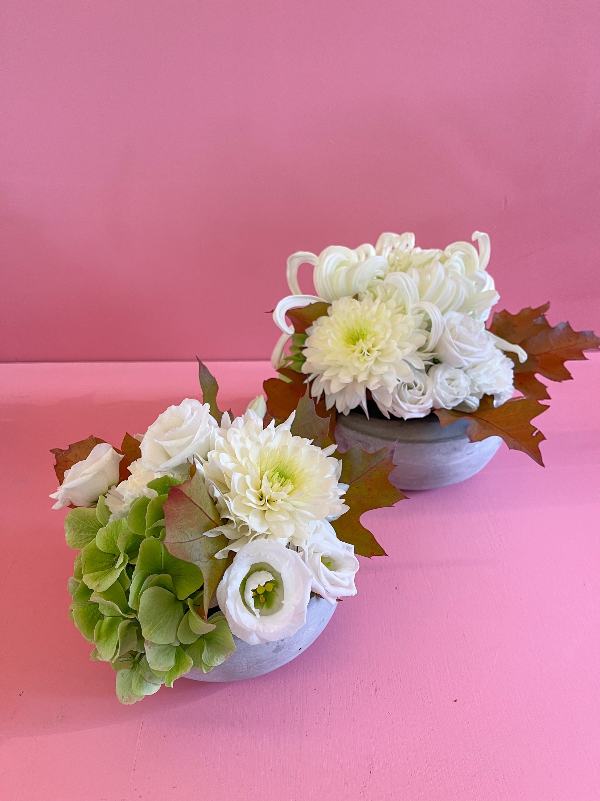 Als je het liever wat moderner ziet, hebben we ook deze leuke bloemstukjes in een kommetje.