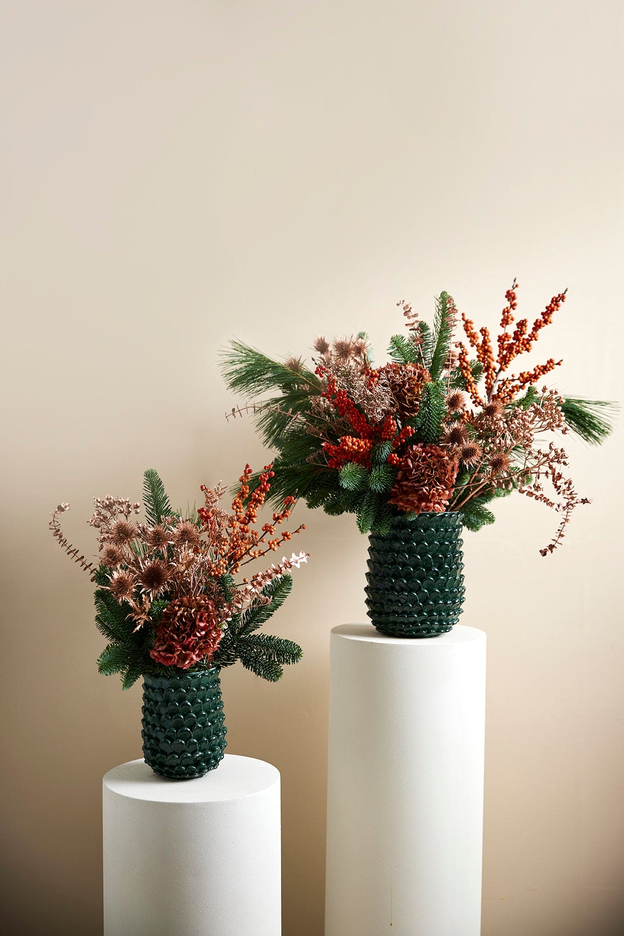 Dit Kerstboeket kan je gemakkelijk de hele winter houden. Het is gemaakt waar we ook kerstkransen met maken, dus alles droogt ook mooi in.
